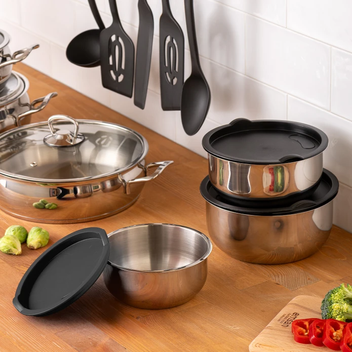 Emsan Karıştır Pişir Sakla 17 Parça Servis Gereçli Çelik Tencere Seti