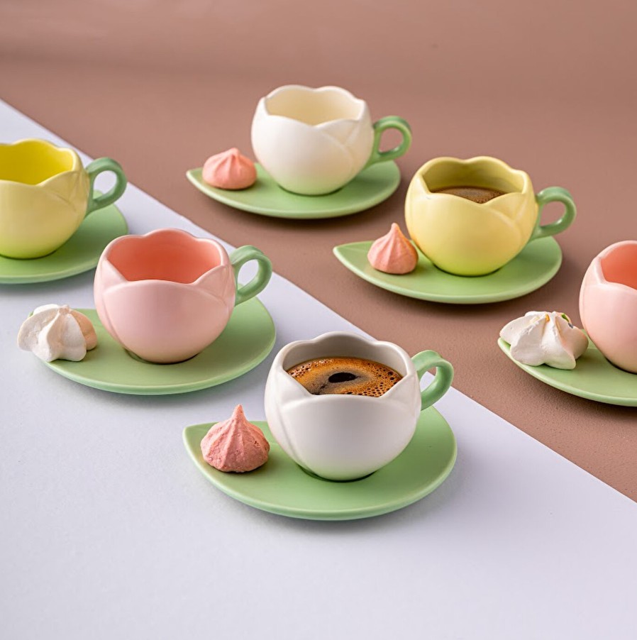 İstanbul Porselen Lale 6'lı Kahve Fincan Takımı 90 ml Multicolor