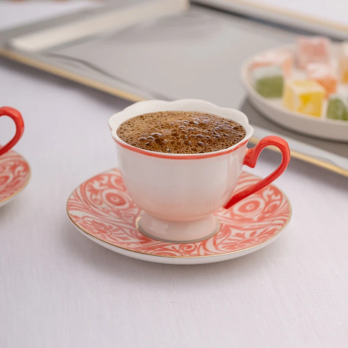 Emsan Aurora 2 Kişilik New Bone Kahve Fincan Takımı 90 ml Pembe