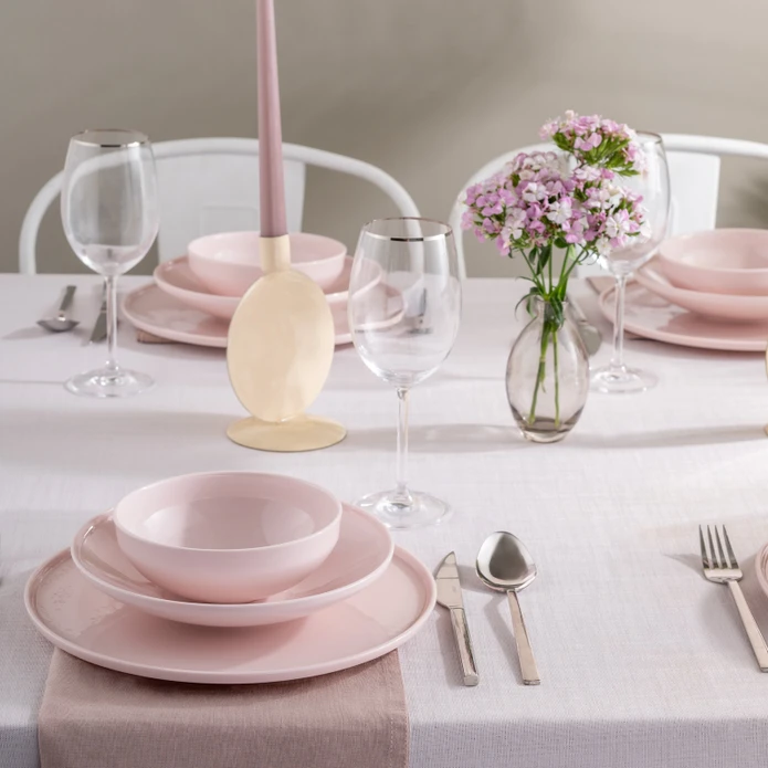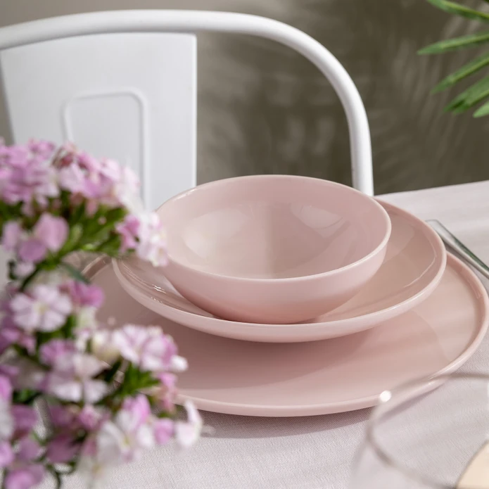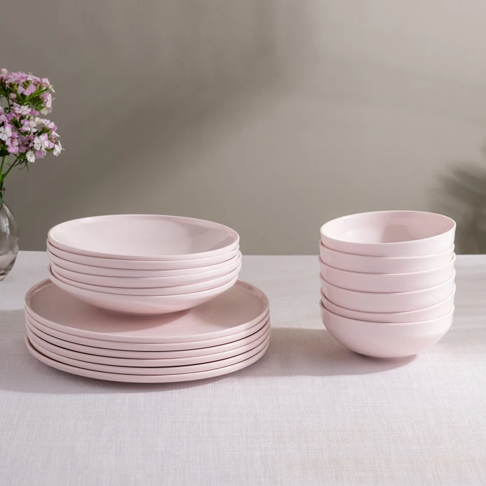 İstanbul Porselen Sara 18 Parça 6 Kişilik Yemek Takımı Pembe